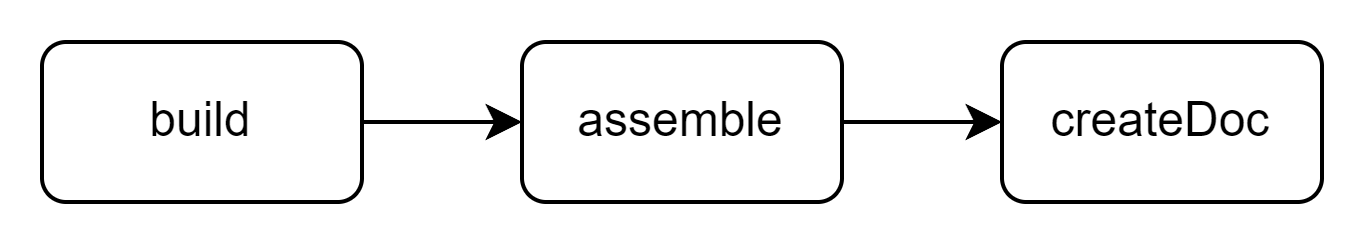 build, assemble, createDoc 순서로 작성되었다면, 다음과 같이 실행됩니다.
