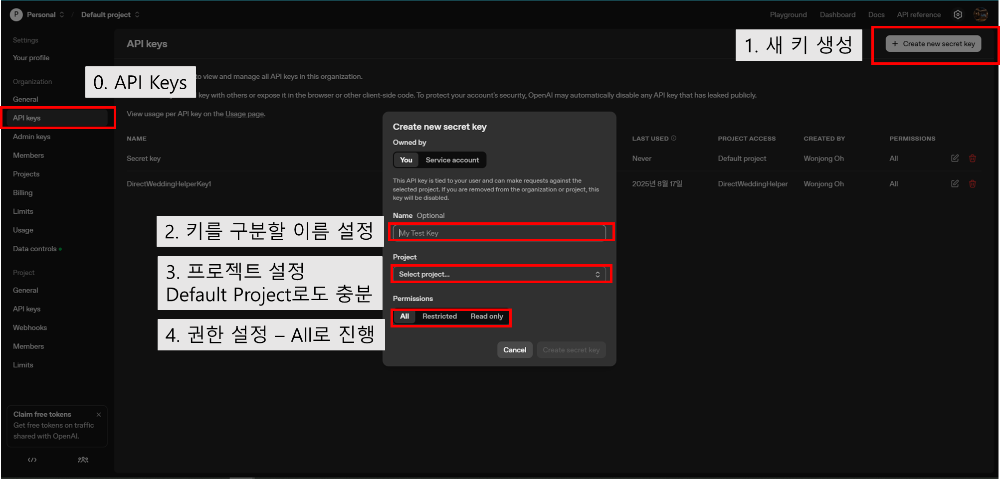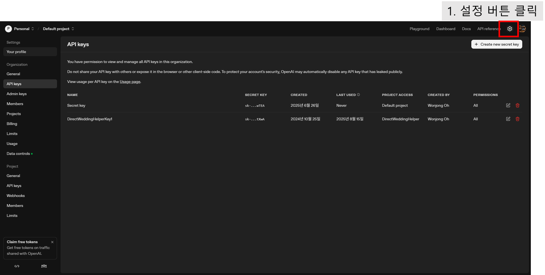 0) 좌측 API Keys 클릭