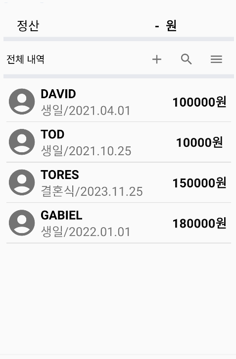 list.add(ListViewData("TORES","결혼식","2023.11.25",150000, listOf("b","d","e")))