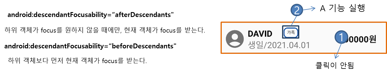 즉, 아래 두 옵션에 대해서, Layout자체는 focus에 대한 옵션이 없으므로,