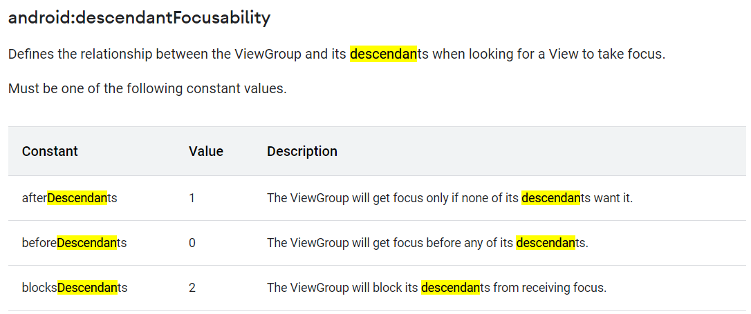 android:descendantFocusability=“beforeDescendants"