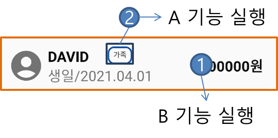 버튼이 아닌 곳을 클릭했을 때는 listView Item의 클릭 이벤트(B)가 실행됨..