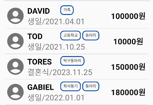 여기서 가족, 고등학교, 동아리 등에 해당하는 것이 버튼이다.