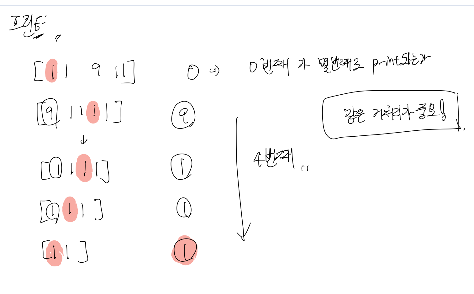 2) 해당 값이 우리가 출력하고 싶은 값(location)이라면, 결과(answer)를 출력하고 종료한다.