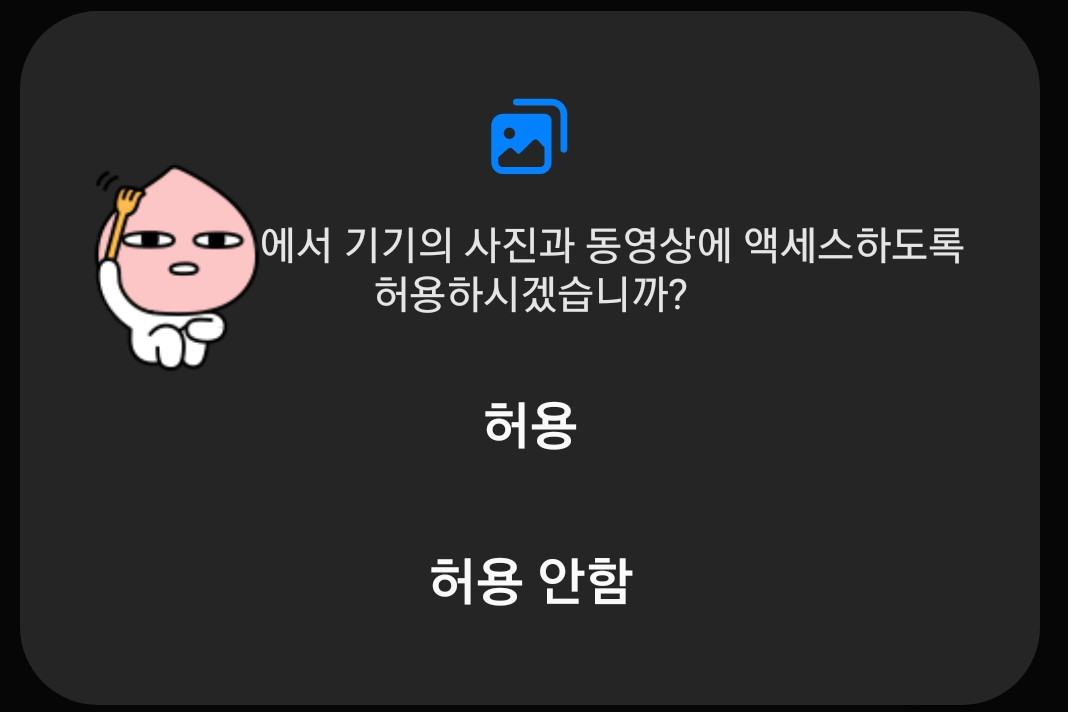 - 해당 권한은 사진, 동영상 엑세스 허용 퍼미션이다. API 33이후부터 사용가능(티라미수)