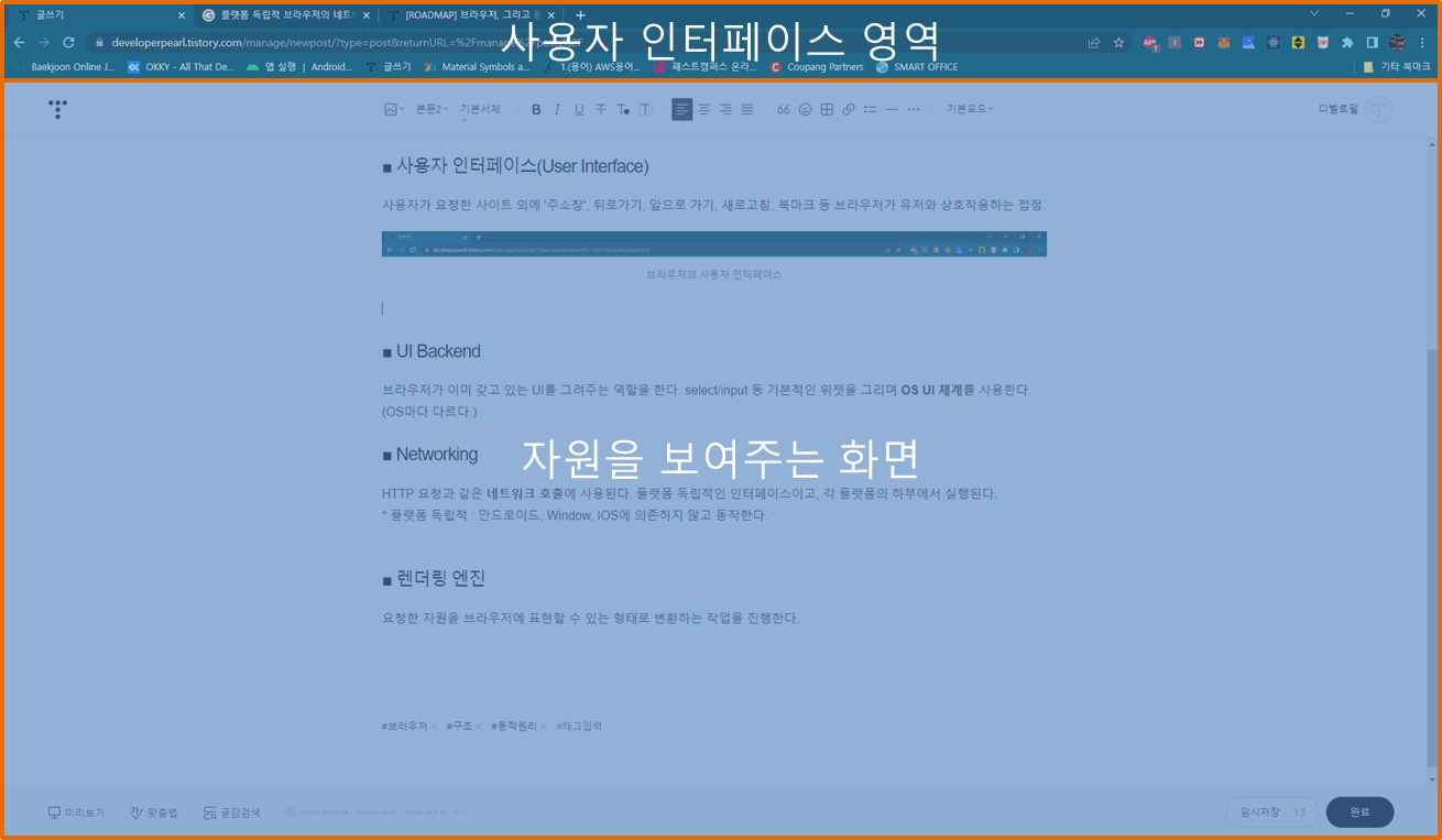 * 브라우저에서 렌더링엔진이 가장 중요하다고 한다. 실제로 HTML 파일을 파싱하는 부분이니까요.