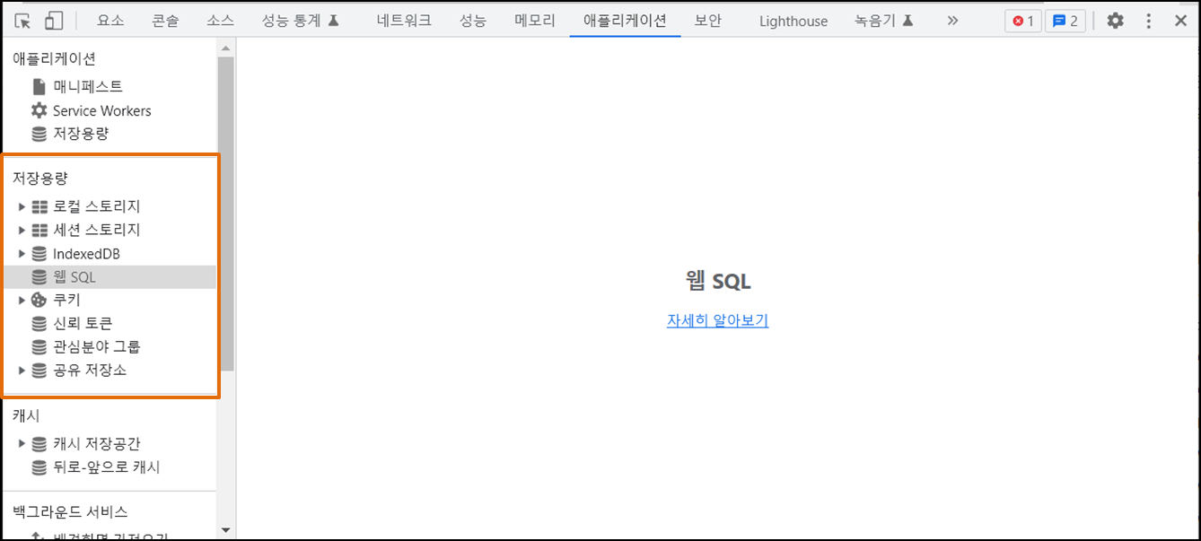 * 개발자 도구의 애플리케이션에서 확인 가능하다.