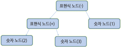 예시) 2+3-1 와 같은 식은 다음과 같은 트리가 된다. 식은 표현식과 숫자로 이루어져 있으며, 각각은 노드가 된다.